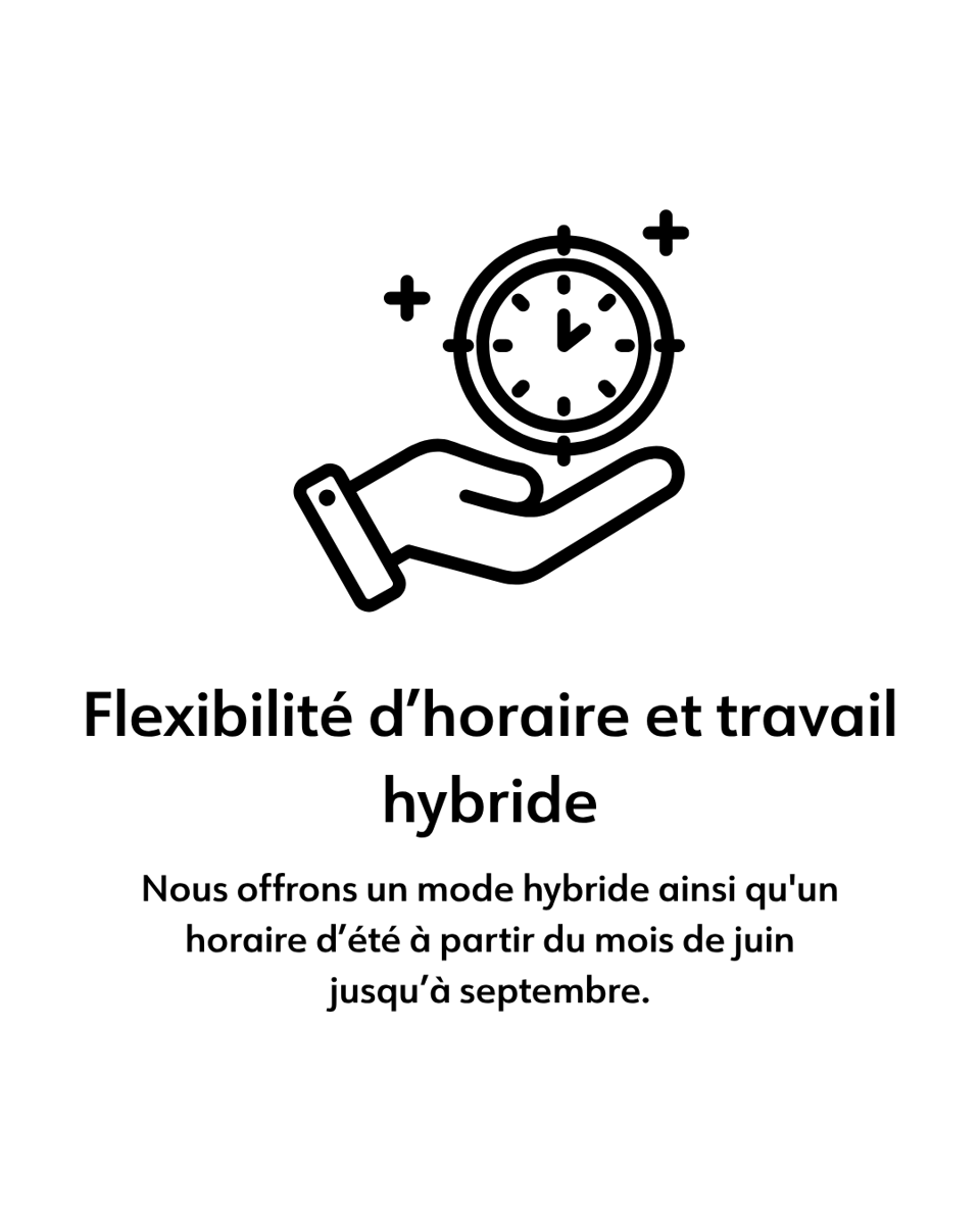 Faire partie de notre équipe, c’est bien plus qu’occuper un poste : c’est intégrer un environnement où chaque personne compte et contribue à un projet collectif. Nous sommes convaincus qu’un milieu de travail positif repose sur la reconnaissance, la flexibilité et une culture saine au quotidien.
